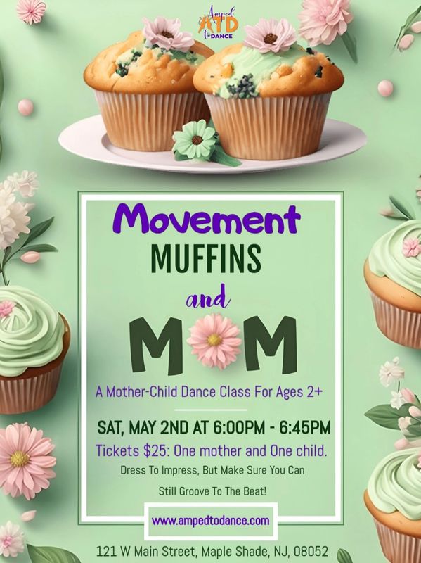 Celebrate the bond between mom (or mother figure) and child with our delightful dance class! 🩰🌸 Join us for a fun-filled session of movement, munching on muffins, and making precious memories together. Let's groove and twirl, mom-and-me style! ❤️✨ Only one (1) ticket is needed per child and adult female. Ages 2+ are encouraged to attend for the best experience.