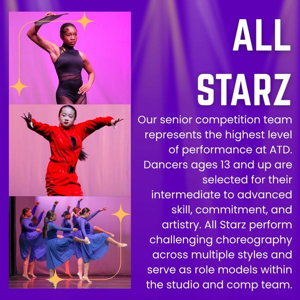 The ATD All Starz embody the spirit of STARZ: Strength that propels them through challenges, Tenacity that keeps them reaching for their goals, Authenticity that shines through their performances, Resilience that empowers them to learn and grow, and Zeal that fuels their passion for dance.